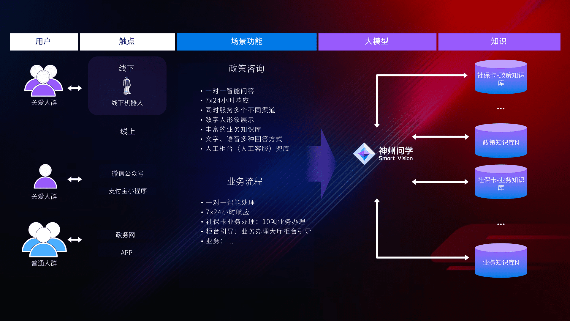 • 线上线下全覆盖:线上提供微信公众号、、支付宝小程序、、政务网、、、、app多种渠道,,,,与线下机器人形成完整服务体系。。